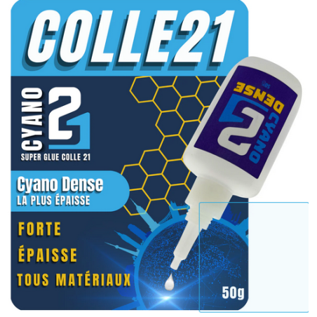 Super Glue Colle21 DENSE - 50g est une colle cyanoacrylate à haute viscosité, spécialement développée pour garantir un collage rapide, contrôlé et ultra résistant.