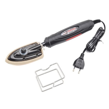 Fer à entoiler pour films et tissus. Température réglable de 55 à 205°C. Livré avec support et "chaussette" de protection. Alimentation sur secteur 220V.