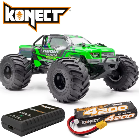 Le Rogue Terra Sport est un monster truck équipé d’un moteur brushless et d’une transmission à 4 roues motrices. Idéal pour s’initier au modélisme, il est livré avec une radio KT3X sur laquelle il est possible de régler la vitesse max pour s’adapter à tous les âges et à tous les niveaux. Le Rogue Terra sport a été développé pour pouvoir rouler partout – il s’adapte à tous les terrains ce qui en fait une voiture extrêmement polyvalente